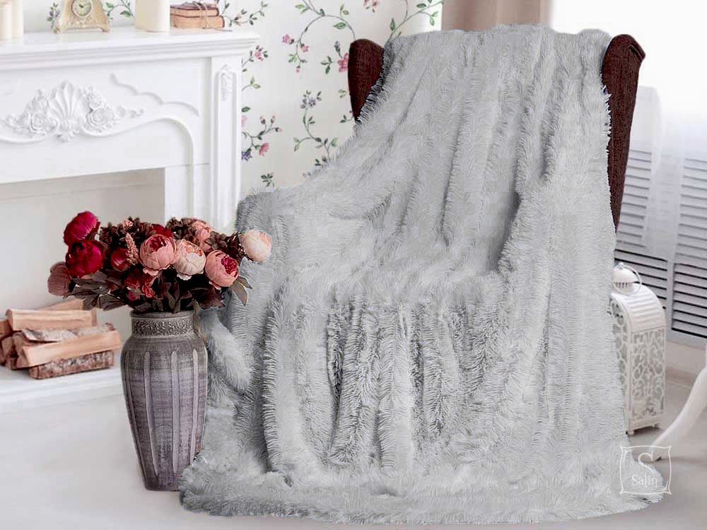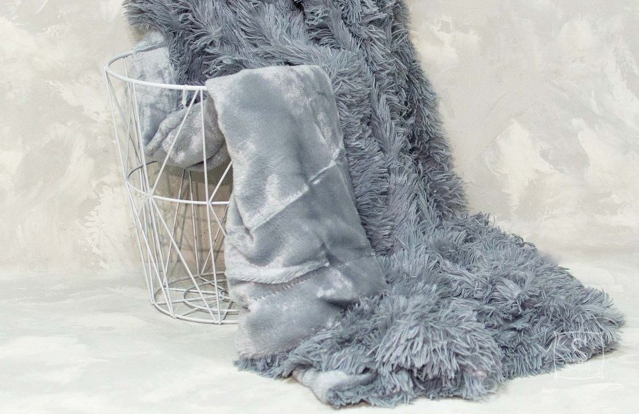 Плед-травка серого цвета из длинного (около 4см) пушистого ворса.