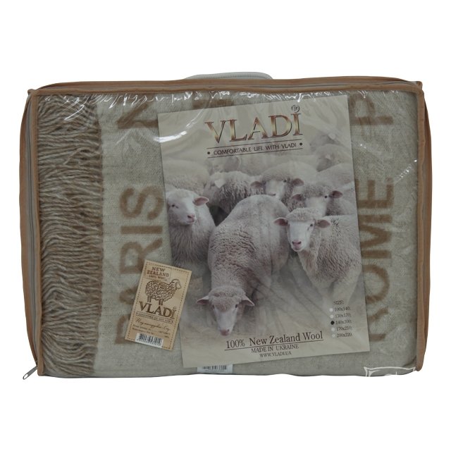 Плед Vladi жаккардовый Сити бежевый, 100% новозеландская шерсть