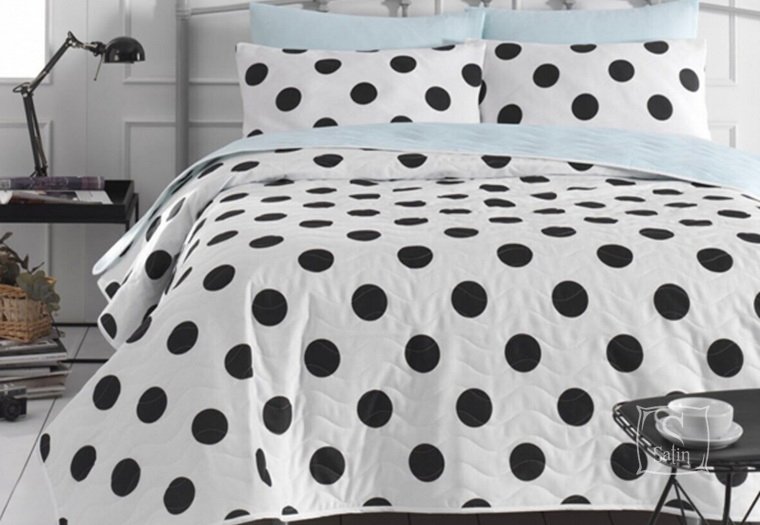 Покрывало стеганное с наволочками на синтепоне Eponj Home Mixpuan a.mavi двухстороннее выполнено в черно-бело-голубых тонах с принтом горох, преобразит вашу спальню без существенных затрат, прослужит долго и будут таким же прочным и красивым, как в день покупки. Покрывало духстороннее: верхняя сторона хлопок, а наполнение силиконизированное утонченное волокно.