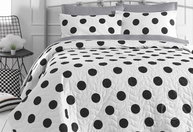 Покрывало стеганное с наволочками на синтепоне Eponj Home Mixpuan maxi gri двухстороннее выполнено в черно-бело-серых тонах с принтом горох, преобразит вашу спальню без существенных затрат, прослужит долго и будут таким же прочным и красивым, как в день покупки. Покрывало духстороннее: верхняя сторона хлопок, а наполнение силиконизированное утонченное волокно.