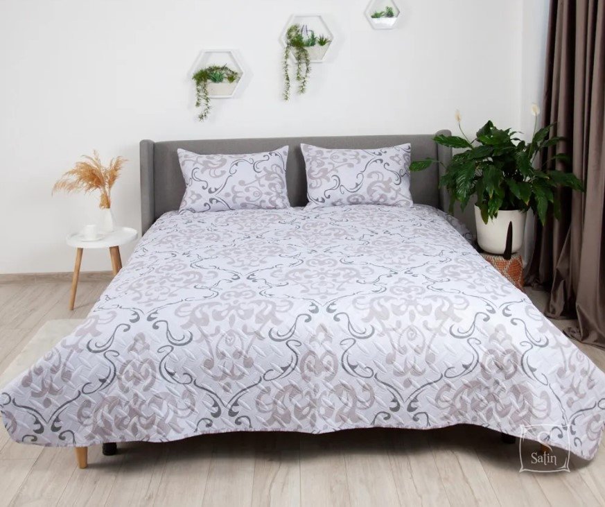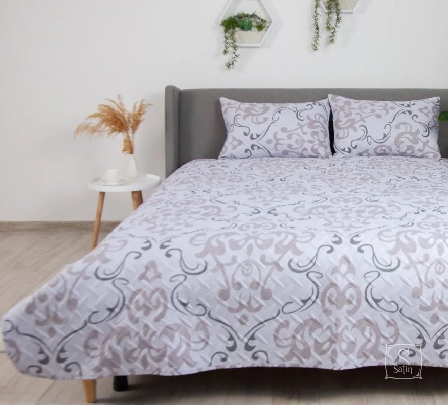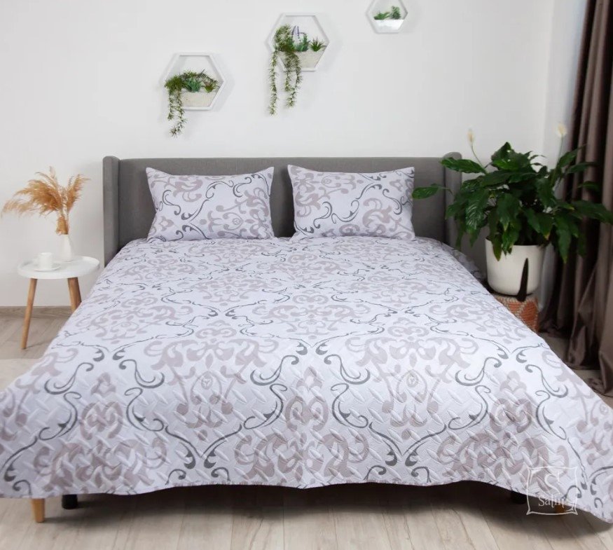 Покрывало ТЕП Provence Глория выполнено в молочно-бежево-серых тонах с узором в стиле прованс.