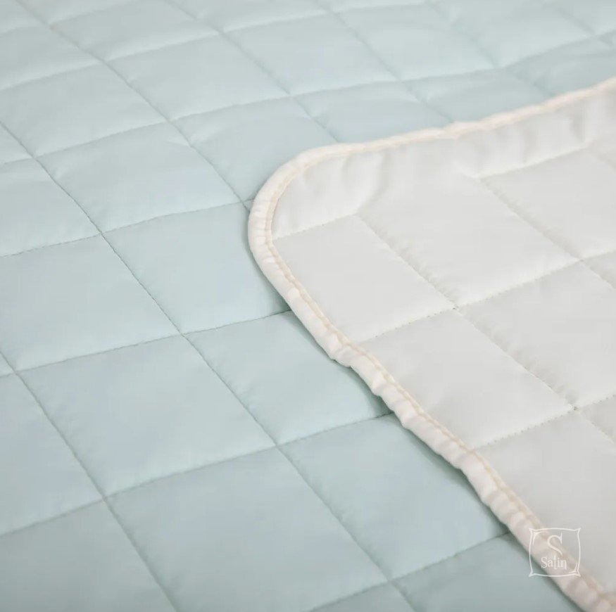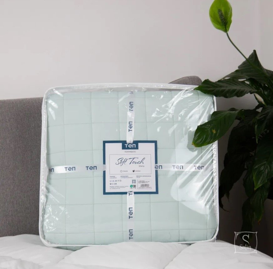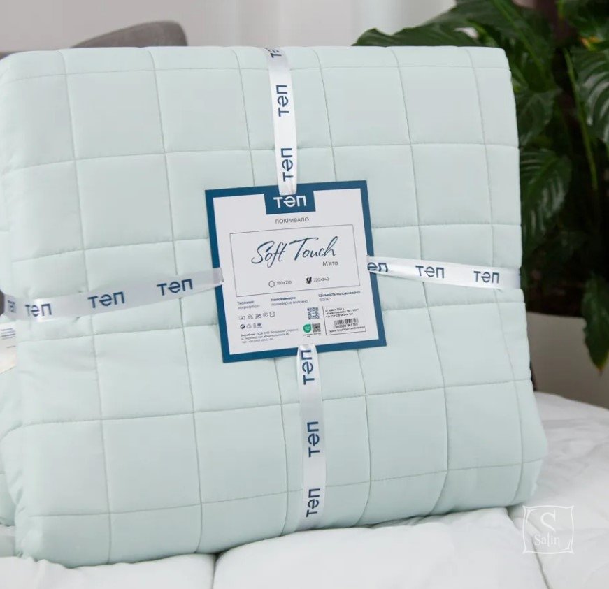 Покрывало ТЕП Soft Touch М'ята выполнено в ментолово-молочных тонах с узором клетка.
