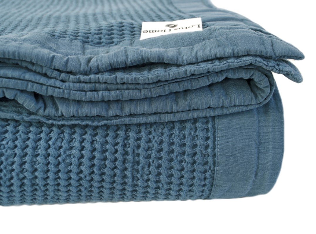 Покрывало Rius Petrol цвета петроль из коллекции Rius от ТМ Lotus Home поможет привнести элегантной утонченности Вашему дому. Натуральный состав ткани из экологически чистых хлопка и бамбука обладает гигроскопичными свойствами. Это абсолютно гипоаллергенный материал, который подойдет людям со склонностью к аллергии.