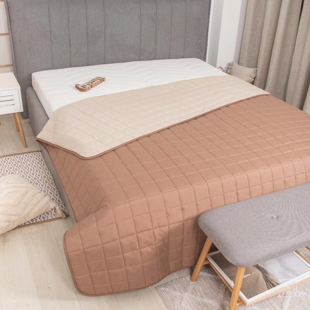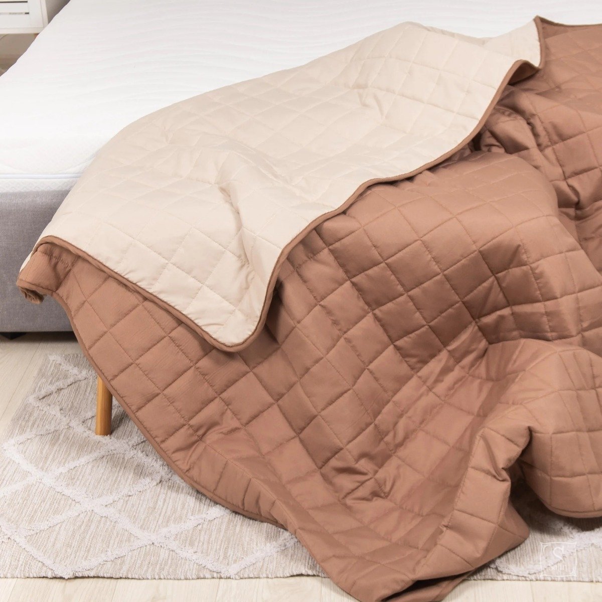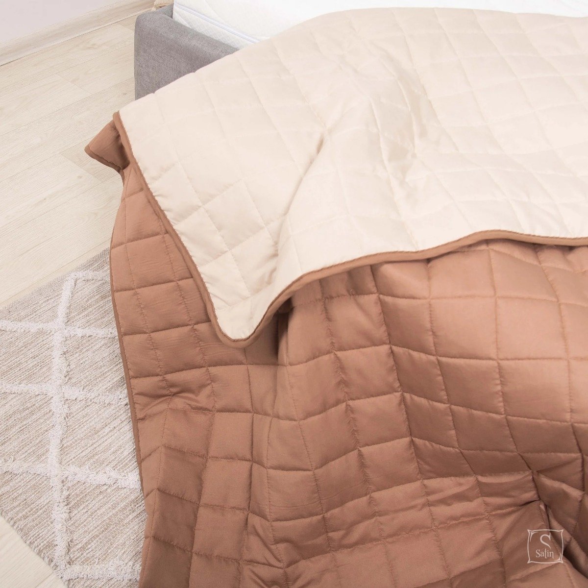 Нарядное двухсторонее стеганое покрывало Viluta Дуэт выполнено из поликоттона. Может использоваться в качестве легкого одеяла или станет украшением спальни. Просто в уходе, подлежит стирке.