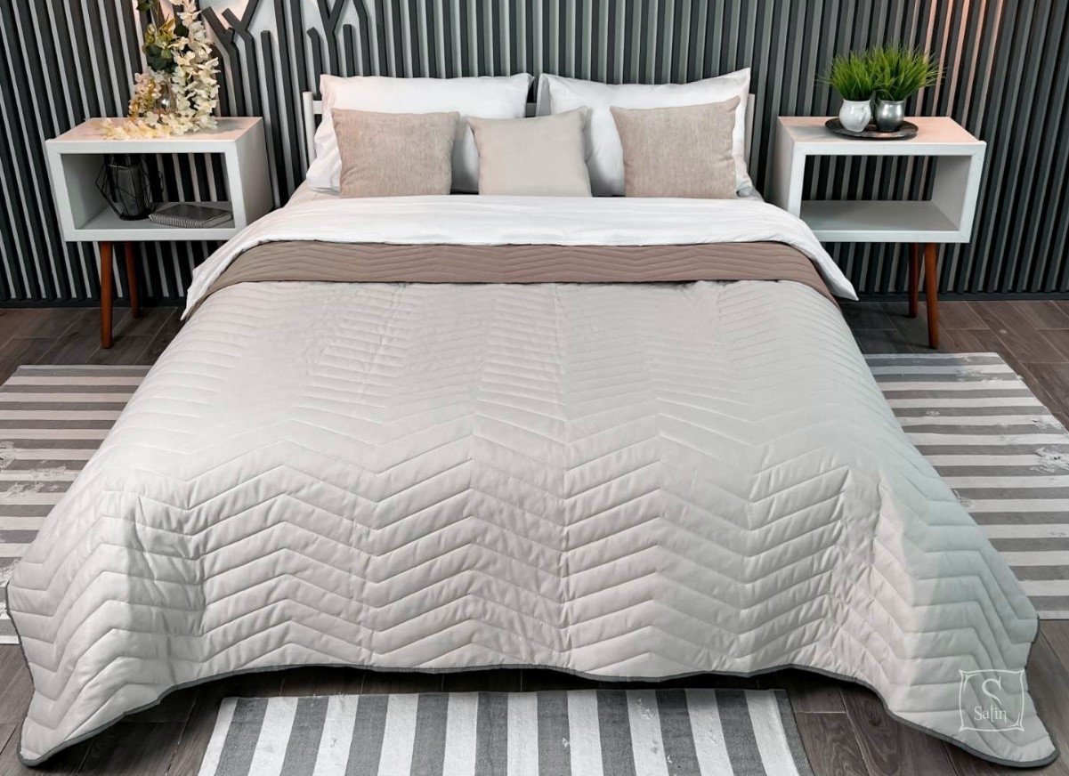 Покрывало стеганое ArCloud. ZigZag Rainy Day+Taupe Grey