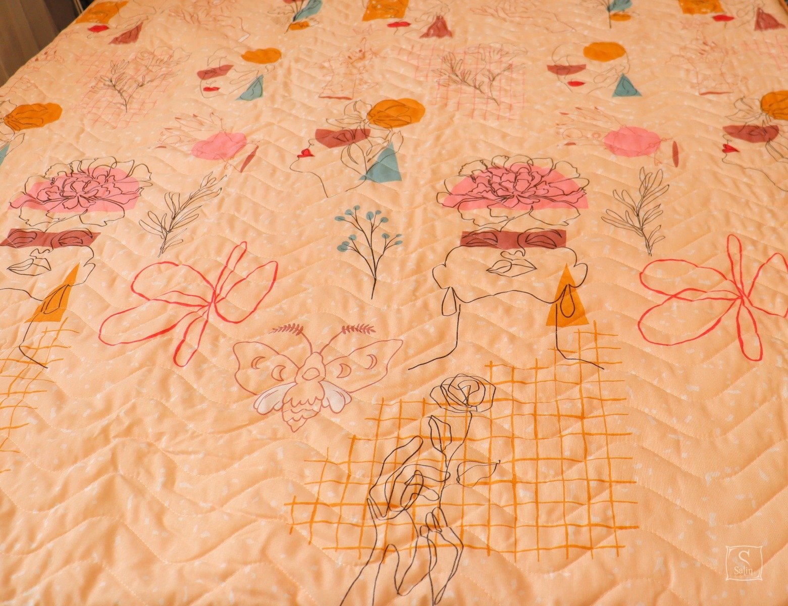 Универсальное стеганое двухстороннее покрывало-одеяло-пододеяльник Lighthouse 4 сезона Genk выполнено в разноцветно-персиковых тонах с красивым узором абстракция. Изготовлено из бязевой ткани голд (65% хлопок, 35% полиэстер), простеганой с тонким слоем антиаллергенного полиэфирного волокна холлофайбер. Плотность: 120 г/м².