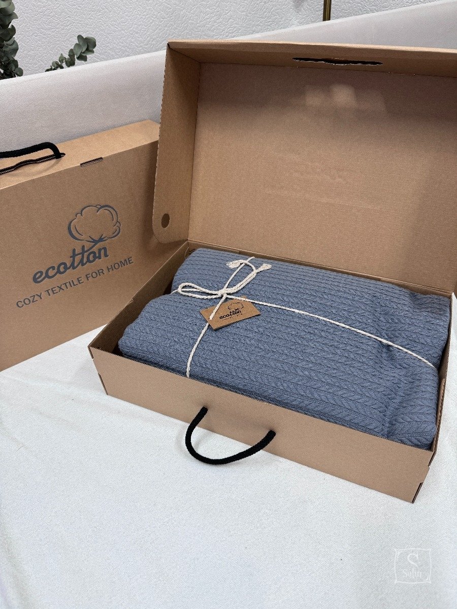 Состав ткани покрывала Ecotton – 100% хлопок, что обеспечивает приятный на ощупь материал и комфортный отдых. Ткань произведена в Турции и отличается высоким качеством. Машинная вязка создает элегантный рисунок в виде косички, который придает покрывалу уникальный и стильный вид.
