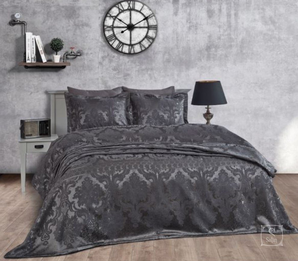 Очень красивый комплект Armada antrasit от известной турецкой ТМ Dantela Vita состоит из роскошного жаккардового покрывала и двух наволочек с ушками, выполнен в цвете антрацит, украшен цветочным жаккардовым узором. Комплект создаст в Вашей спальне атмосферу уюта и комфорта, надежно защитит Ваше постельное белье от пыли, грязи и ультрафиолета.
