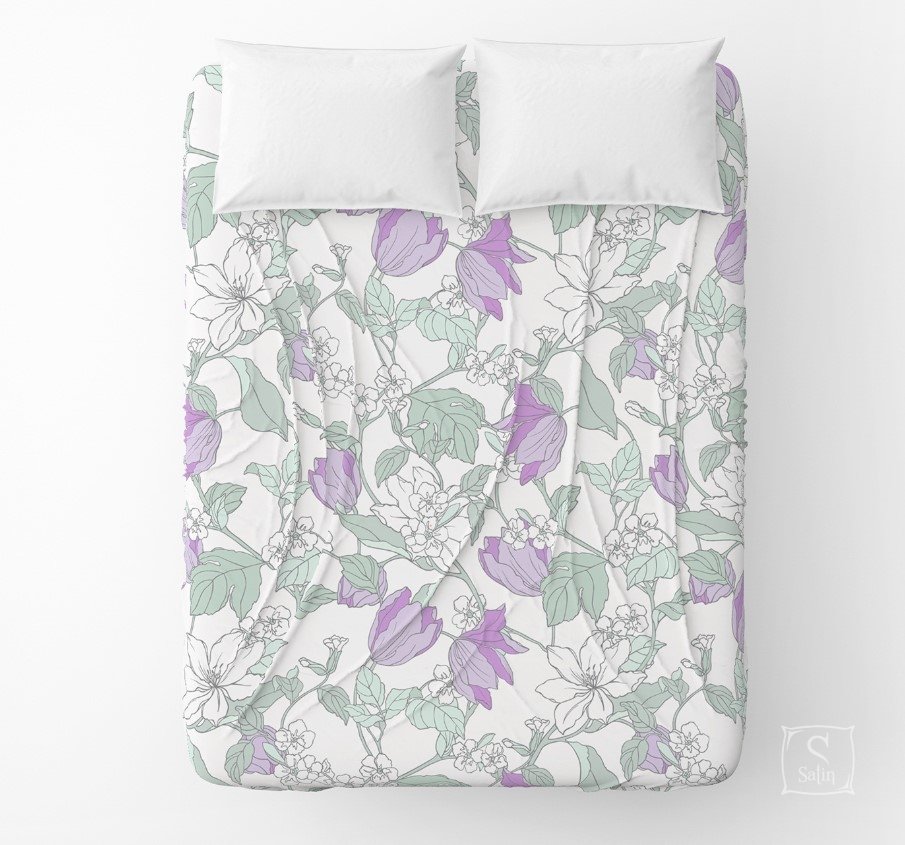 Простынь Home Line Весняний Вечір лілово-ментоловий выполнена из бязи (100% хлопка) с цветочным узором.