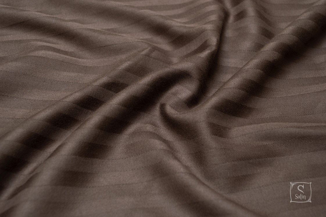 Простынь Iris Home Отель выполнена в однотонном кофейном цвете из сатина с жаккардовыми полосами. Ширина жаккардовой полосы - 1 см.