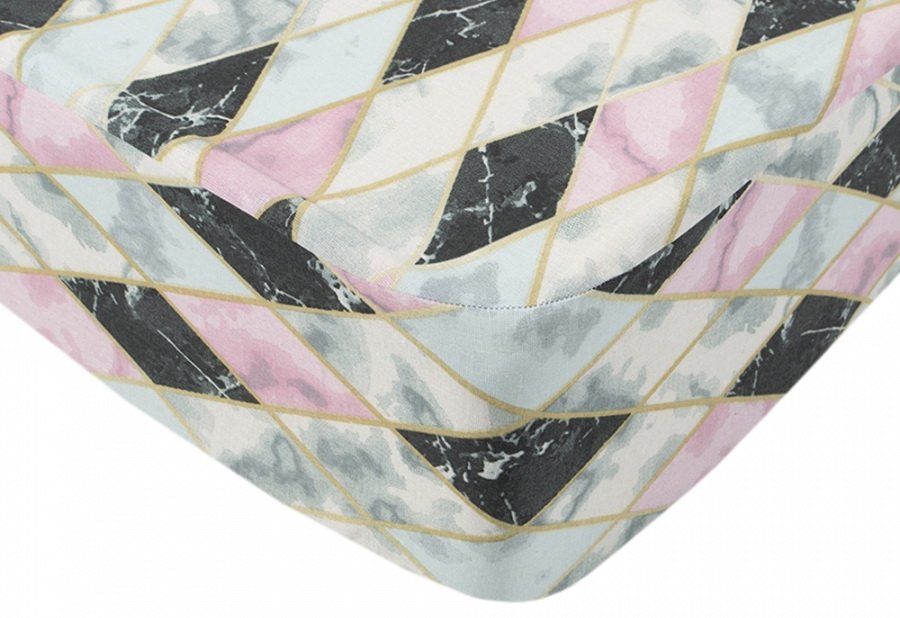 Простынь на резинке Iris home выполнена в серо-розовом цвете с узором геометрия из 100% хлопка, ранфорс. Простынь не скатывается с матраса, легко одевается и надеждно крепится с помощью резинки по периметру. Приятная на ощупь, плотная, практичная и долговечная, хорошо выдерживает частые стирки.