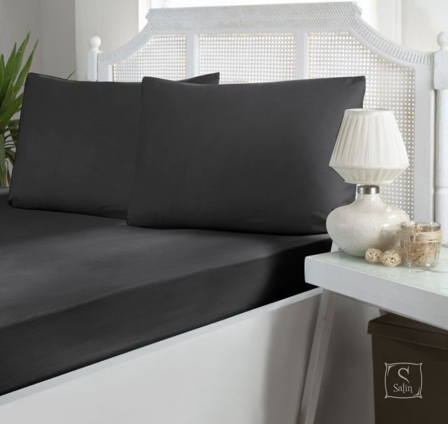 Простынь на резинке с наволочками First Choice Сатин Anthracite выполнена в однотонном темно-сером цвете из сатина (100% хлопок).