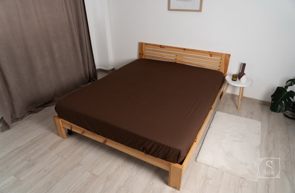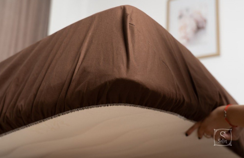 • Простынь на резинке ТЕП коричневого цвета из 100% хлопка (ранфорс) плотно надевается на кровать, не сползает и не мнется.