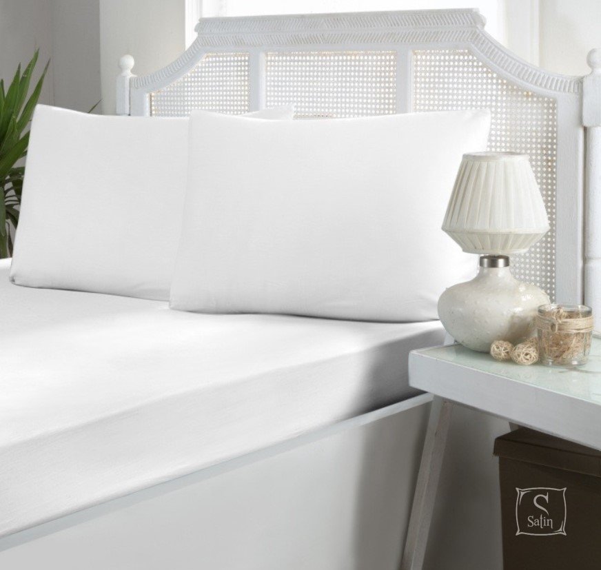 Простыня на резинке с двумя наволочками First Choice Сатин White выполнена в однотонном белом цвете из сатина (100% хлопок).
