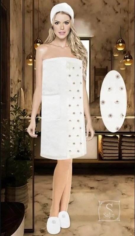 ХарактеристикиКомплектация: полотенце-юбка на липучке 72х140 см - 1 шт., чалма - 1шт., тапочки (длина 26 см) - 1 пара.