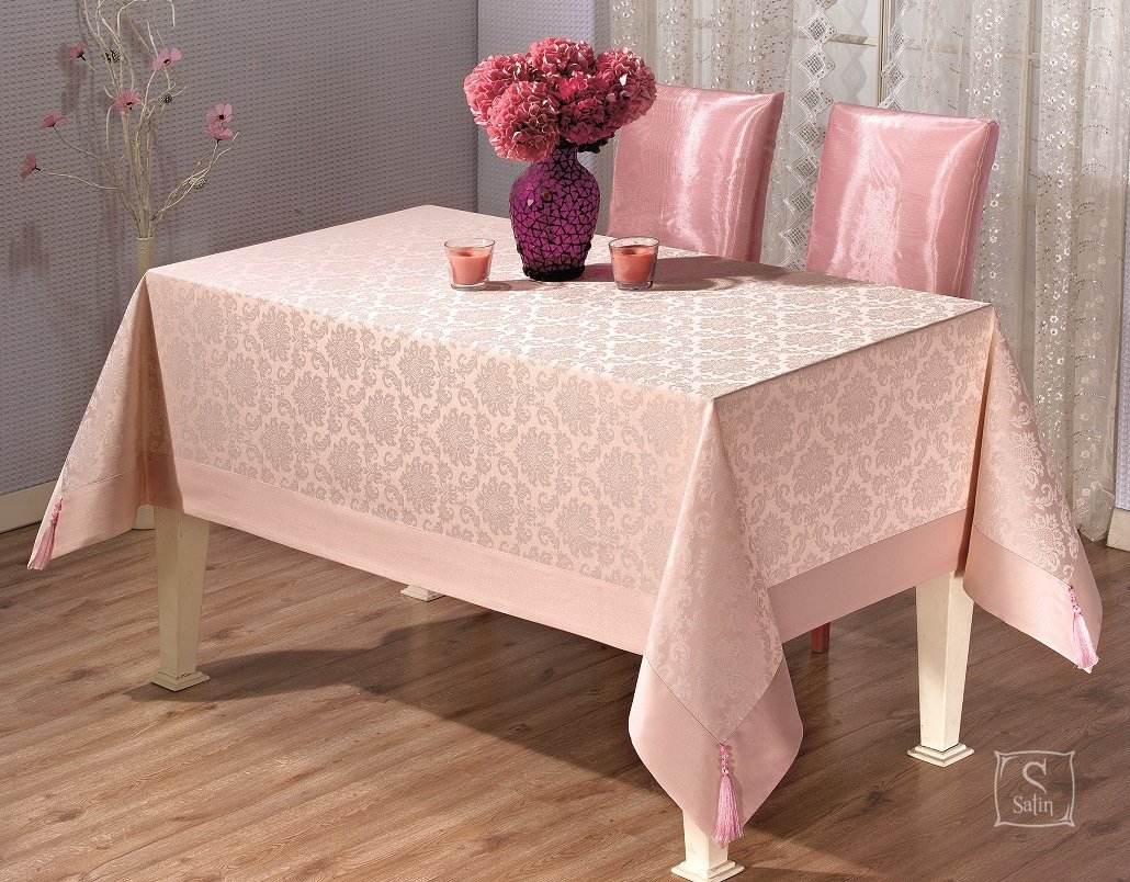 Нарядная турецкая скатерть Тabe PCU95A 2278, размером 160х220 см, прекрасно подходит как для домашнего, так и для праздничного использования, создаст в вашем доме атмосферу уюта и комфорта.