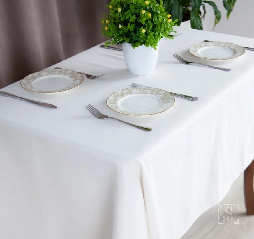 Скатерть ТЕП Aquastop водоотталкивающая Snowy - однотонная белого цвета.