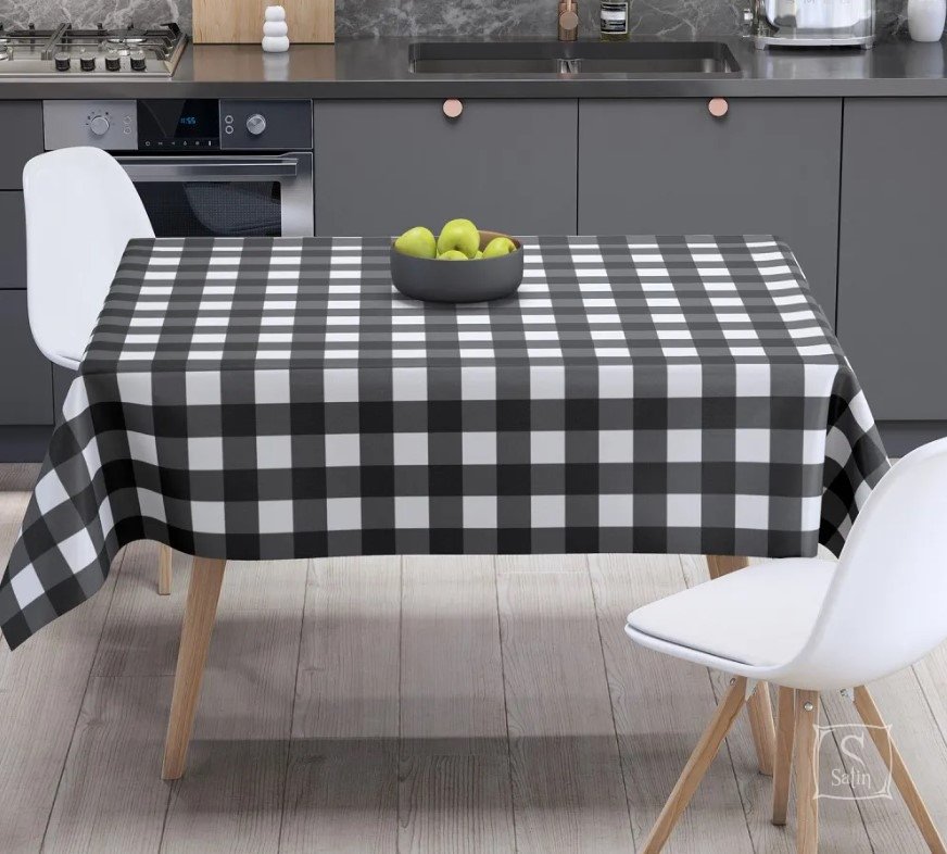 Скатерть ТЕП Panama водоотталкивающая Black check выполнена в черно-белых тонах с узором клетка.