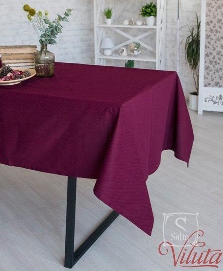 Хлопковая скатерть Viluta Гладь бордового цвета, однотонная. Хлопковые скатерти легко разглаживаются, имеют нарядный и дорогой вид. Рекомендуется стирка при температуре до 40° с отжимом на минимальных оборотах.