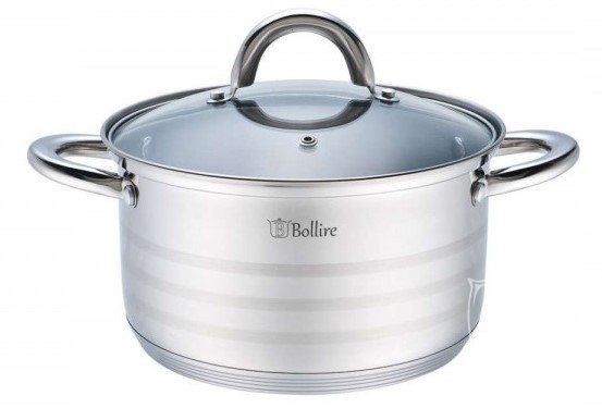 Кастрюля Bollire BR-2002 изготовлена из нержавеющей стали (AISI 201). Внешнее покрытие серебристого цвета.