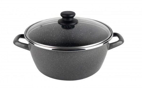 Внутреннее покрытие — двухслойное антипригарное покрытие Stone Coating, усиленное минеральными частицами. Покрытие абсолютно экологичное и безопасное, чрезвычайно прочное и устойчиво к царапинам. Такое покрытие не содержит ПФОА, перфтороктановую кислоту и является абсолютно безвредным. Крышка из термостойкого стекла с ободом из нержавеющей стали и отверстием для выхода пара, ручка выполнена из бакелита и не нагревается. Ручки на корпусе кастрюли металлические эмалированные, цельнолитые с корпусом и незанимают лишнее место. Кастрюлю можно использовать на всех типах нагревательных, поверхностей и стеклокерамических плитах - дно индукционное.Так же, всю посуду ТМ Vitrinor можно мыть в посудомоечной машине.