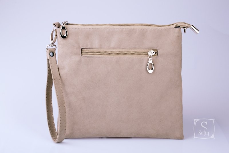 Клатч размером 25х20 см комплектуется 2 ремешками - ручкой через плечо+ручкой для кисти.. Сумку можно носить на кисти, на локте, на согнутой в локте руке, на плече или через плечо. Клатч имеет 2 кармана- внутренний на змейке и наружный на змейке.