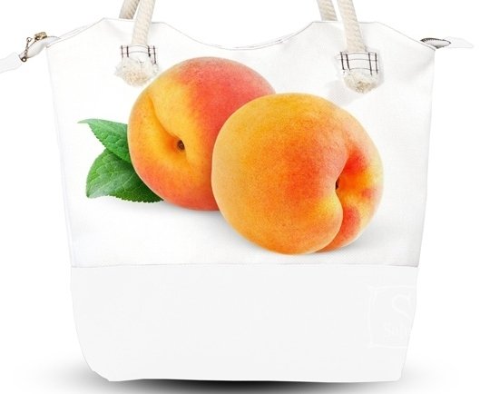 Сумки изготовлены из тканого материала полотняного плетения итальянского производства. Ткань водоотталкивающая, антивандальная. Подклад выполнен из качественной ткани, есть карман на два отделения - для мобильного телефона и мелких вещей. Закрываются сумки на металлическую молнию. Общий вес сумки около 300 грамм. Текстильные сумки легкие в хранении и перевозке. Для ухода подходит машинная стирка. Варианты оформления разнообразные: пейзажи, животные, национальные мотивы и т.д. Модель Фрутти С0909 выполнена с изображением абрикос на белом фоне. Нижняя часть сумки выполнена в белом цвете.