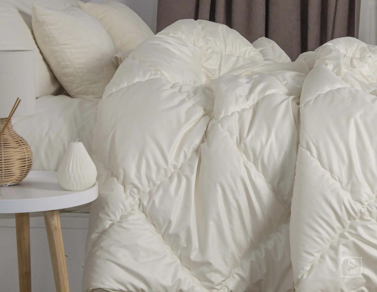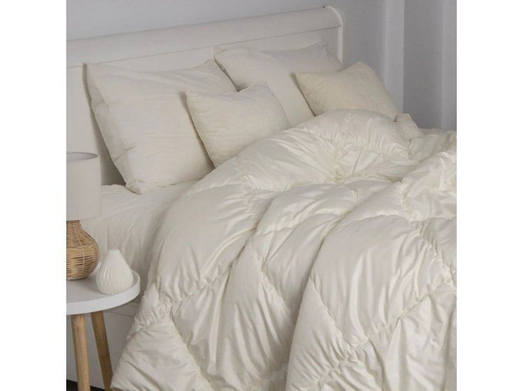 Натуральна вовна завжди вважалася чудовим наповнювачем. Вона сприятливо впливає на організм, стимулює кровообіг та полегшує м'язові болі. Волокна з овечої вовни відрізняються більшою пружністю та значною гігроскопічністю, що дозволяє ковдрі добре зберігати форму та швидко її відновлювати, навіть за інтенсивного використання.