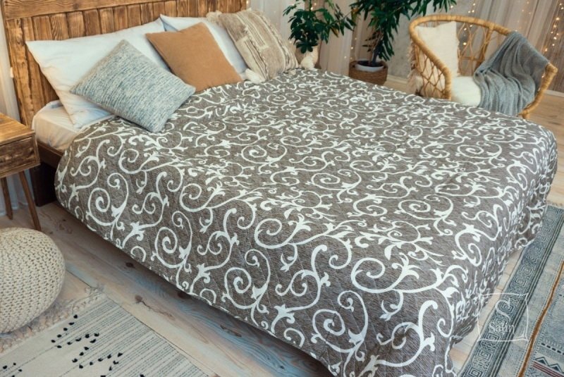 Покривало-ковдра стьобана Leleka Textile П-766 у сірому кольорі з вензелями. Наповнювач з антиалергенного волокна щільністю 80 г/м2, матеріал чохла - полікоттон - вибір людей, які цінують якість і практичність. Виріб може використовуватися як ковдра.