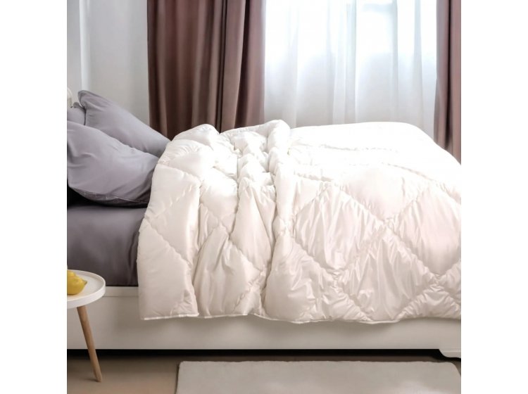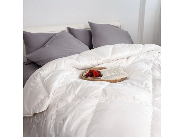 За рахунок швидкого вбирання тепла, воно є єдиним волокном у світі, яке зберігає та тонізує шкіру. Ідеальна м'якість ковдри робить сон максимально затишним. Тканина чохла: мікрофібра. Наповнювач волокно сої із щільністю 300 г/м2.