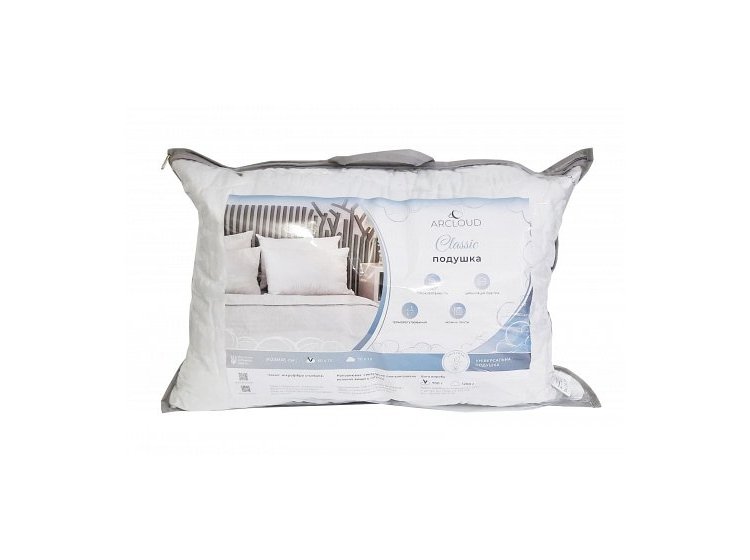 Гіпоалергенна стьобана подушка ArCloud Classic з кантом білого кольору на блискавці . Чохол: мікрофібра. Наповнювач: кулькове силіконізоване волокно вищого гатунку. Підходить для людей, які страждають на алергію на натуральні наповнювачі. Пружна та одночасно м'яка подушка забезпечить максимальну зручність під час сну.