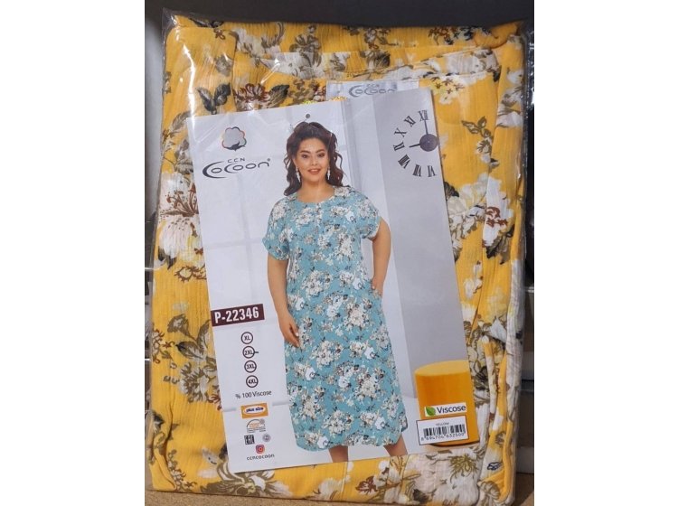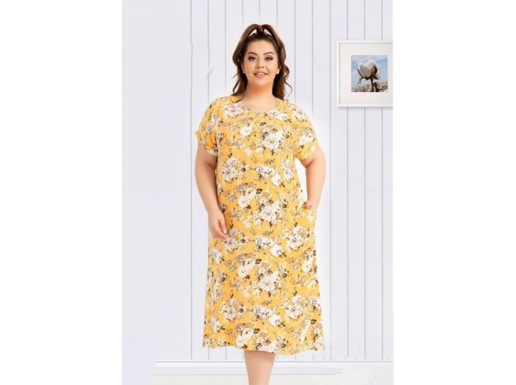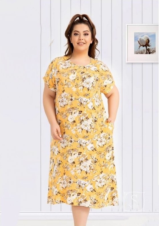 Сукня-туніка Cocoon 22346 yellow представлена в жовтих тонах із квітковим принтом. Сукня-туніка вільного крою, з короткими рукавами та кишенями. Є чудовим зручним та ошатним одягом для дому, відпочинку. Чудовий крій та оригінальна модель дозволять вам виглядати бездоганно.