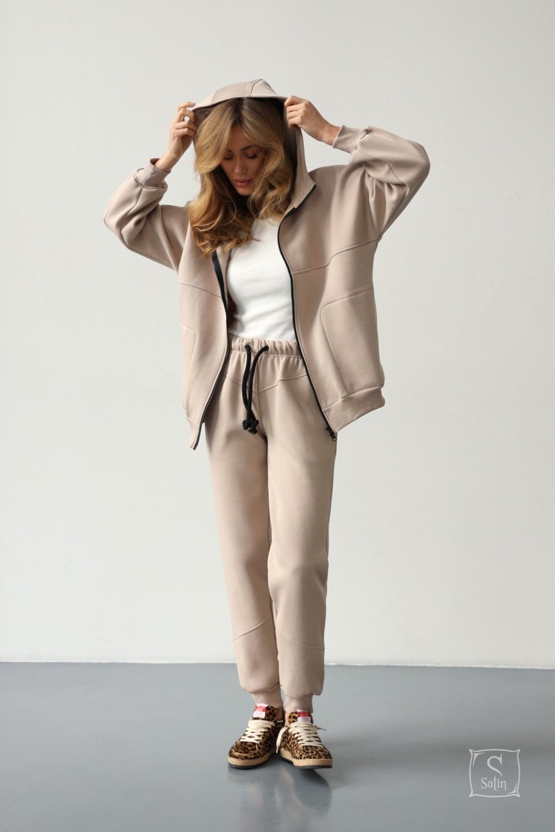 Збалансована комбінація стилю та комфорту – утеплений костюм на флісі Volf 24019 бежевого кольору . Штани з кокеткою надають додатковий шарм, а кофта на блискавці дозволяє швидко та зручно одягнутися. Ідеальний вибір для прогулянок чи вечірньої зустрічі з друзями. Відчуйте тепло та стиль разом із цим стильним костюмом.