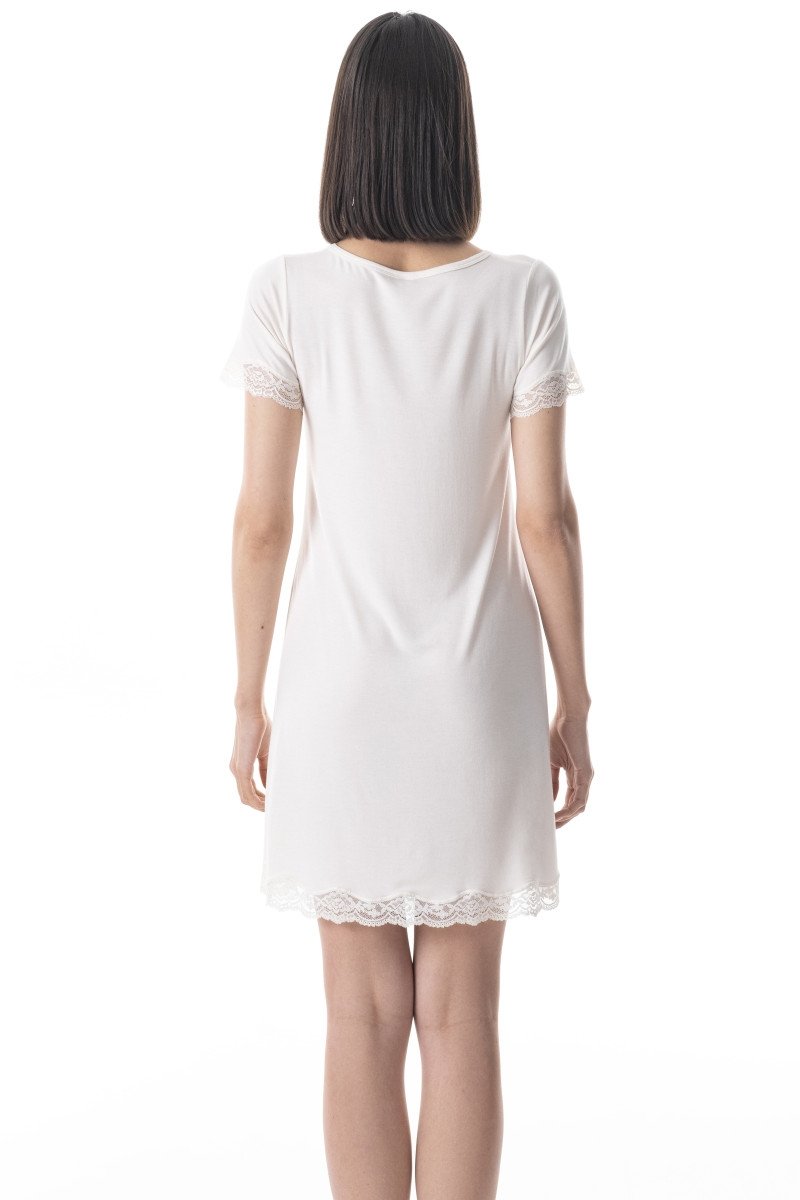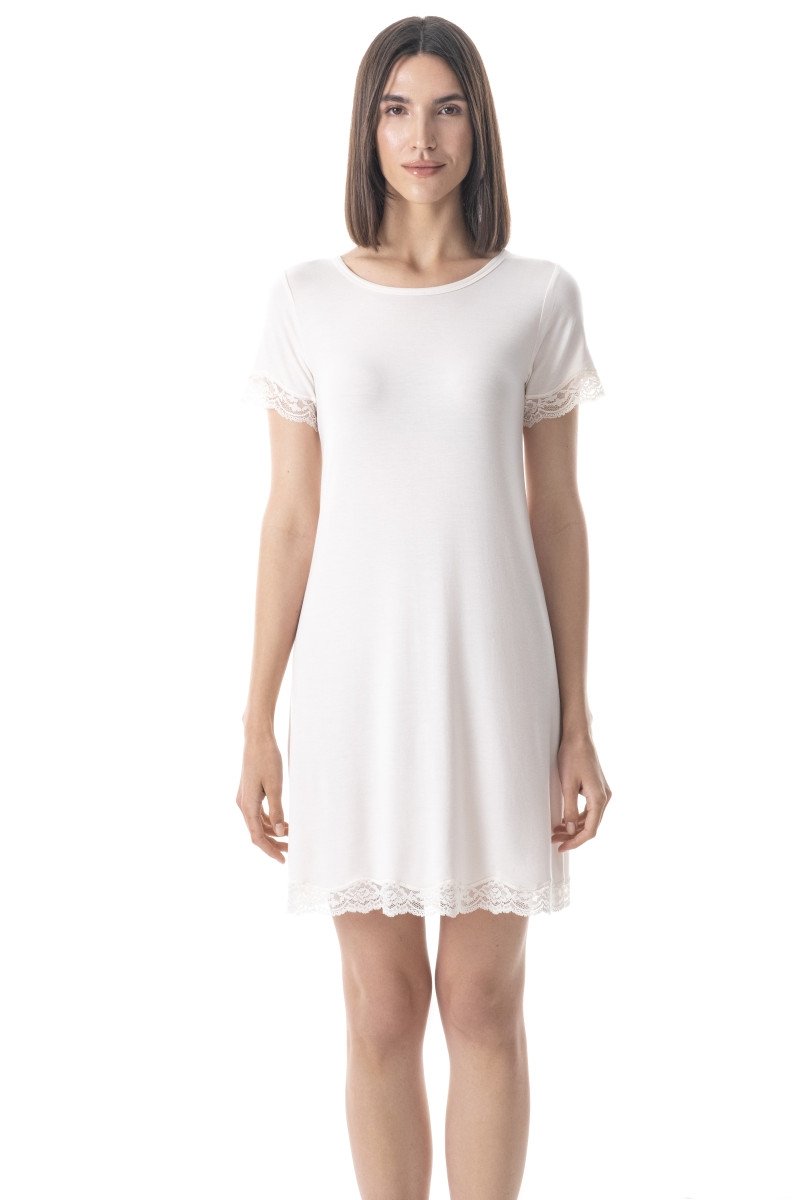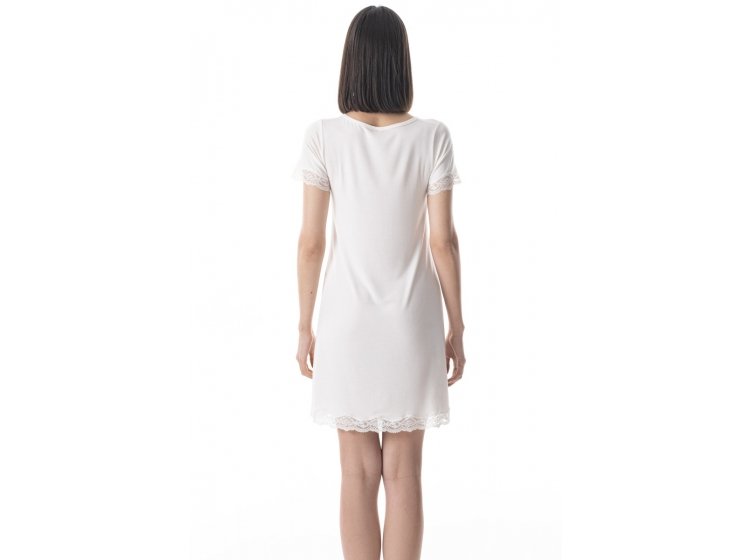 Футболка-сорочка для сну з мереживом German Volf 24082 в молочному кольорі - це не просто функціональний одяг для сну, але і стильний елемент домашнього гардеробу, який радуватиме вас своєю красою та комфортом. Вона ідеально поєднується з іншими елементами домашнього одягу, створюючи гармонійний та затишний образ. Витончене мереживо надає сорочці нотки розкоші, підкреслюючи жіночність та елегантність, а молочний відтінок робить її універсальною та придатною для будь-якої домашньої ситуації.