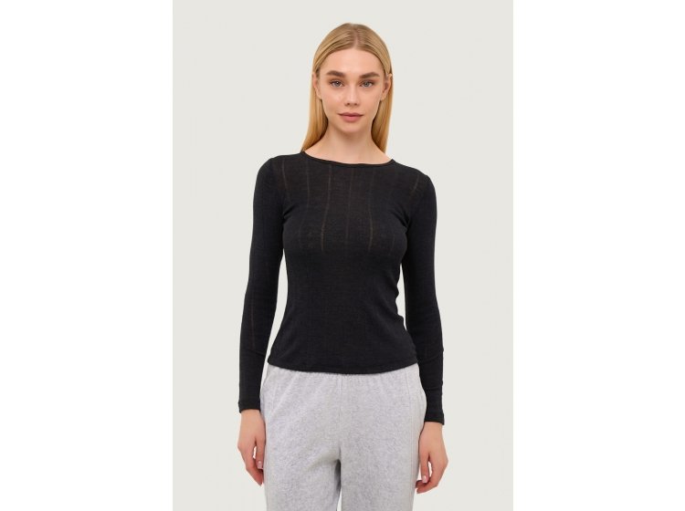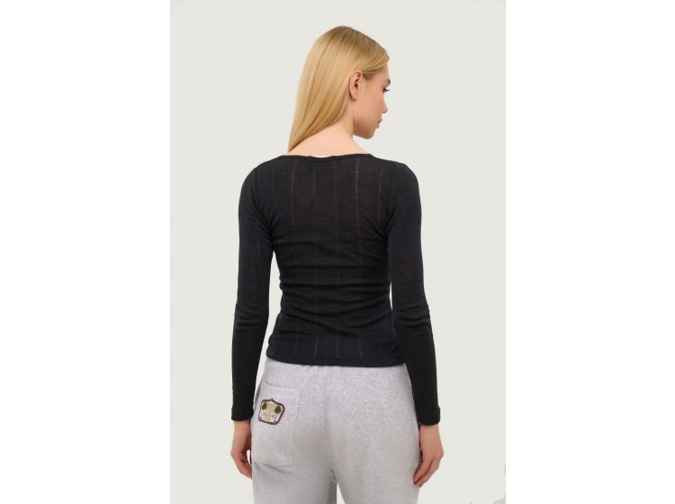 Жіночий лонгслів з вовни German Volf 23181 темно-сірого кольору з витонченими перфораціями у формі сердець створений для тих, хто шукає баланс між затишком та стилем.