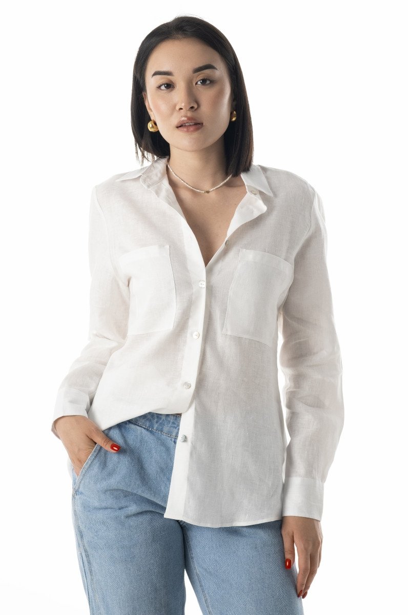 Класична лляна сорочка з кишенями в білому кольорі від German Volf - це незамінна річ у гардеробі для жінок, які цінують комфорт, якість та стиль. Вона стане універсальним елементом, який допоможе створити різні образи будь-якої події. Незалежно від того, чи одягаєте ви її на роботу, прогулянку чи святкову зустріч, ця сорочка забезпечить вам стильний вигляд, витонченість та відчуття легкості, підкреслюючи вашу природну елегантність.