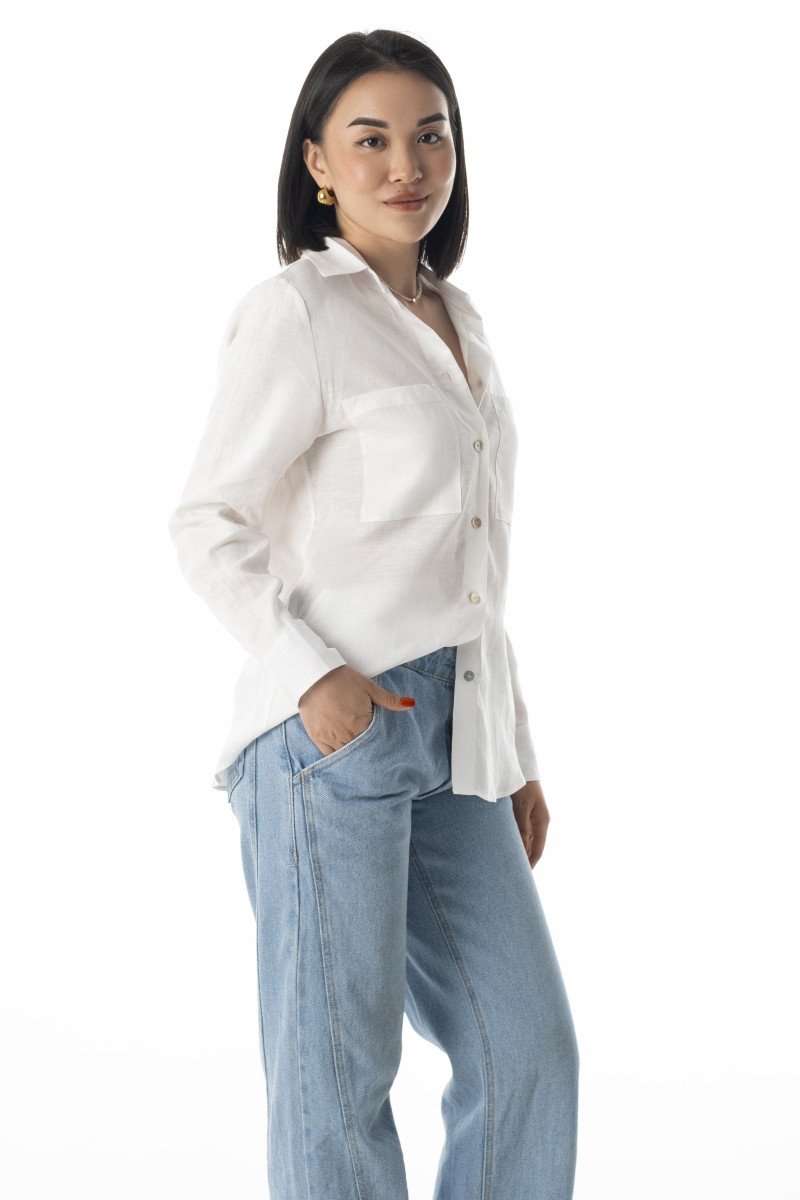 Білий колір сорочки надає образу чистоти, свіжості та легкості. Білий являє собою класичний і нейтральний відтінок, який чудово поєднується з будь-якими кольорами, дозволяючи легко комбінувати сорочку з іншими предметами гардеробу. Білий лляний одяг завжди виглядає стильно та актуально, підходячи як для повсякденного стилю, так і для ділових чи більш офіційних образів. Це ідеальний вибір для любителів універсальних речей, які завжди виглядають елегантно та доречно.