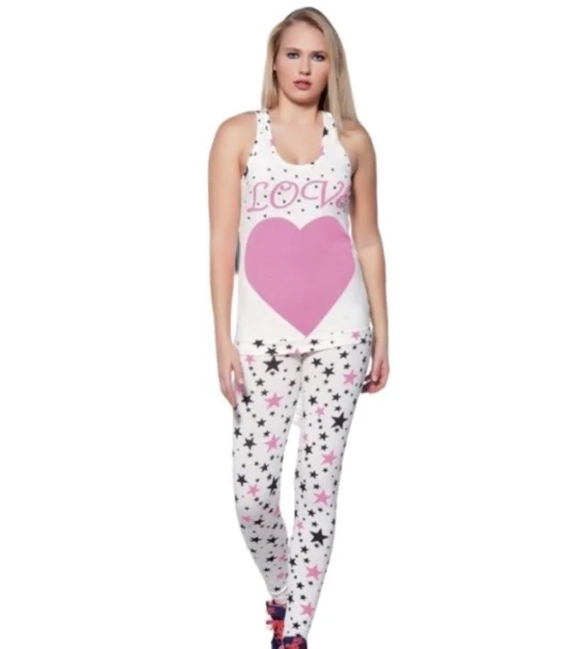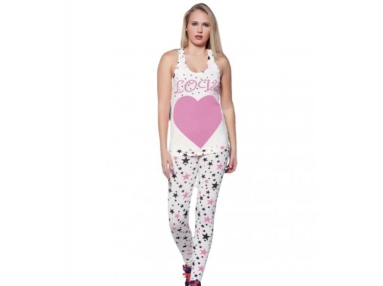 Домашній жіночий комплект Lady Lingerie 3642 включає майку та лосини з принтом серця та зірки. Модель зі стильним та комфортним дизайном, практична та зручна.