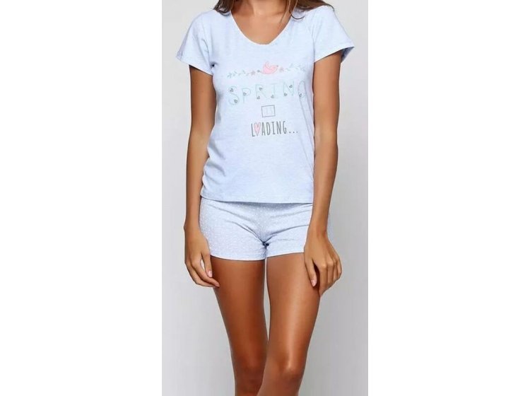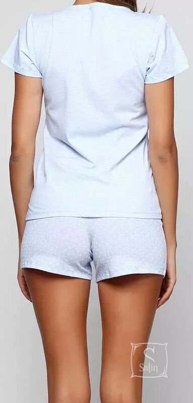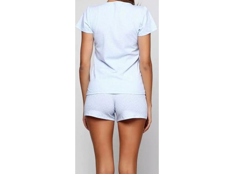 Піжама жіноча майка з шортами EGO виконана в блакитному кольорі, складається з футболки з принтом та шортів. Є чудовим зручним і ошатним одягом для дому та сну.