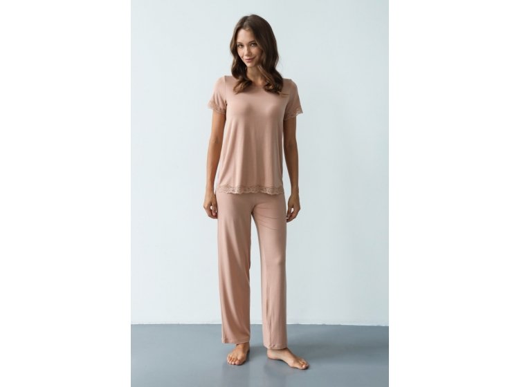 Жіночі штани для сну German Volf 24077 із модалу в бежевому кольорі – це втілення комфорту, ніжності та елегантності, яке робить відпочинок справжньою насолодою. Виконані з високоякісного модалу, ці штани забезпечують неймовірну м'якість, легкість та приємне відчуття на шкірі, створюючи ідеальні умови для комфортного сну. Модал - це натуральний матеріал, який відомий своїми властивостями: він "дихає", добре відводить вологу і залишається ніжним навіть після численних прань, даруючи вам відчуття свіжості та затишку.