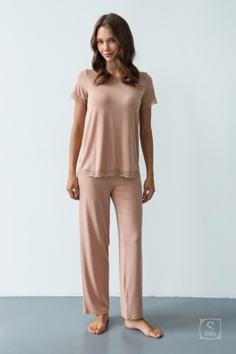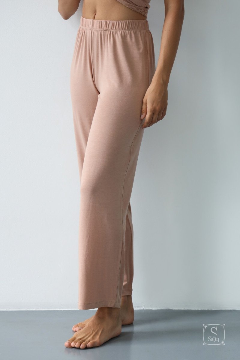 Бежевий колір - це класика, що підходить для будь-якого стилю. Він надає образу спокою, легкості та елегантності, роблячи штани ідеальним вибором для тих, хто цінує витонченість навіть у домашньому гардеробі. Бежевий – універсальний відтінок, що підходить для будь-якого типу шкіри, надаючи образу природності та гармонії. Цей колір дарує почуття спокою та затишку, що робить його особливо доречним для домашнього одягу, коли хочеться розслабитися та відпочити.