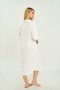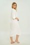 Дизайн туніки відрізняється універсальністю: вона підходить як для пляжного відпочинку, так і для повсякденних прогулянок. Вільний крій забезпечує зручність та легкість рухів, підкреслюючи природну красу силуету. Білий колір надає образу свіжості та елегантності, гармонійно поєднуючись з іншими елементами гардеробу, такими як шорти, спідниці чи купальники.