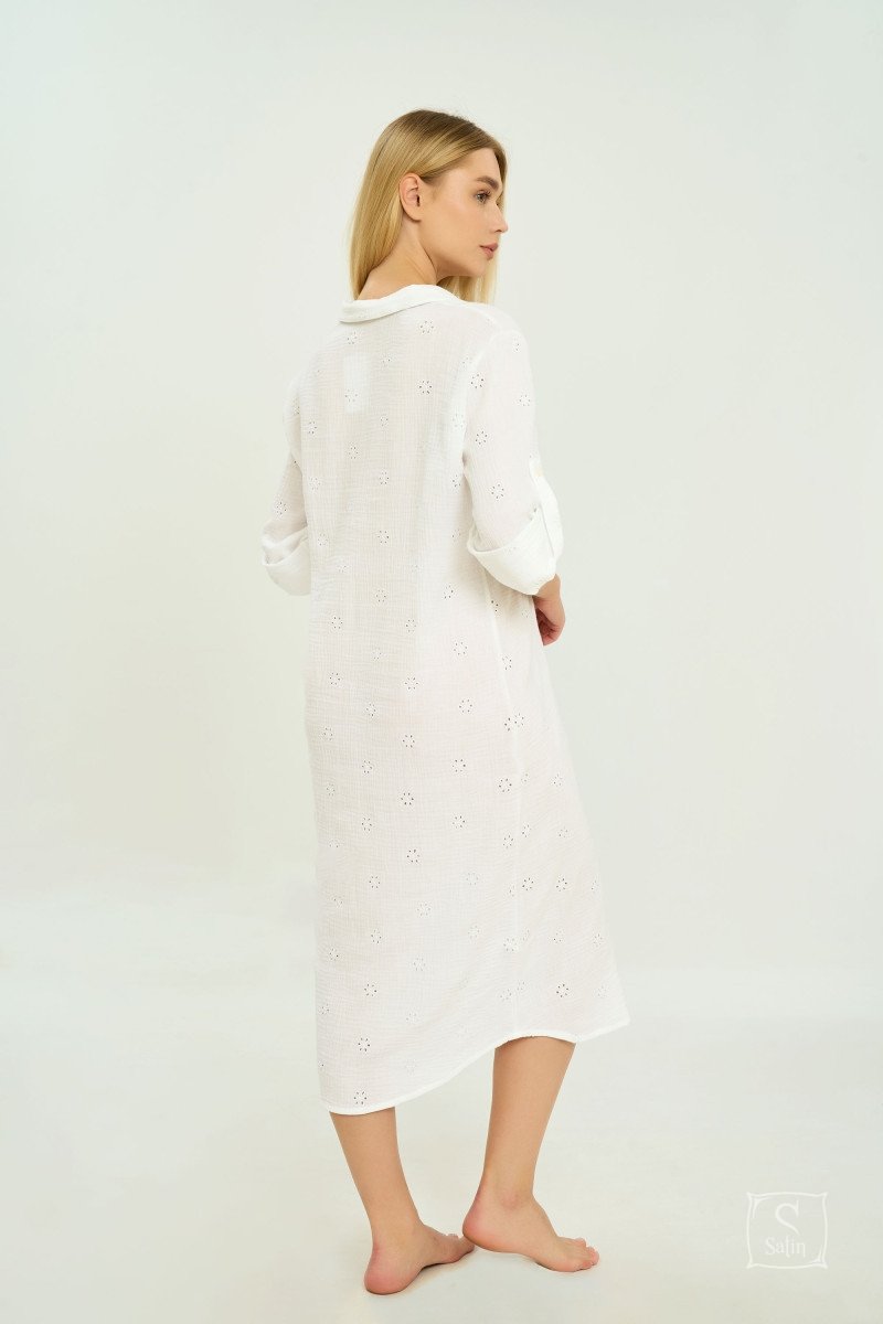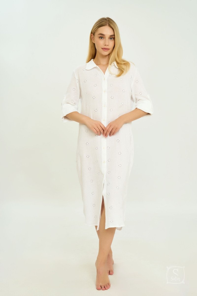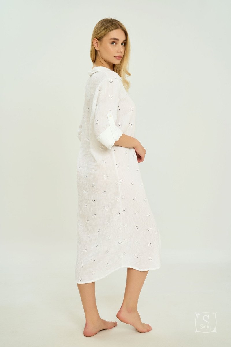 Жіноча туніка з муслинового шиття German Volf 24135 білого кольору – це ідеальний вибір для створення стильного та елегантного образу у теплу пору року. Виготовлена з легкого та дихаючого мусліну, ця туніка забезпечує максимальний комфорт навіть у спекотні дні. Тканина має ніжну текстуру, яка приємна до тіла, а вишукане шиття надає виробу унікальності та шарму.
