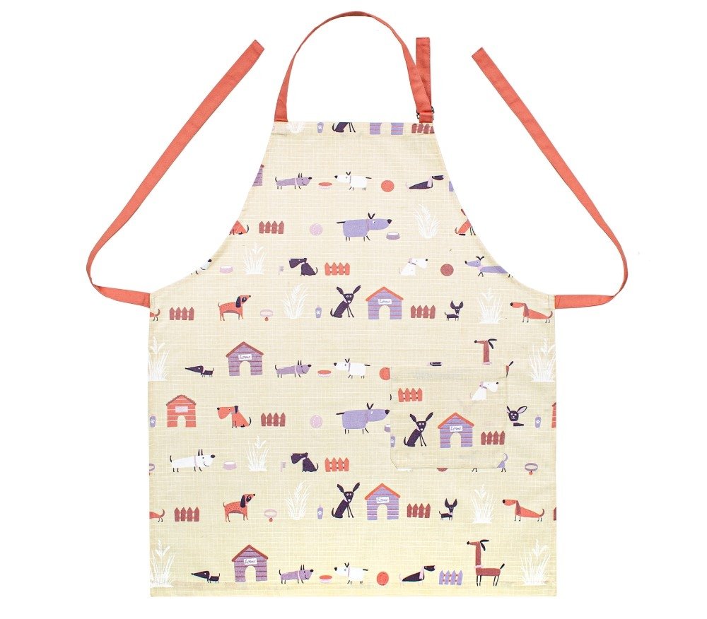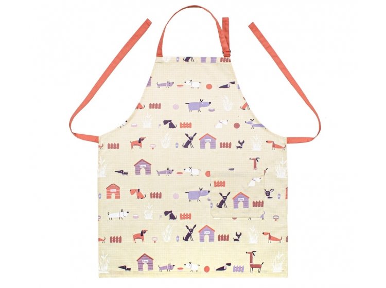 Фартух із регульованою зав'язкою Home Line "Гав-гав" виконаний у різнокольорово-пісочних тонах із візерунком собачки .
