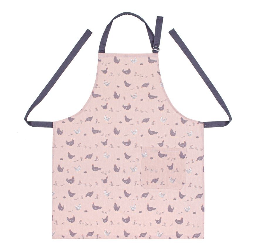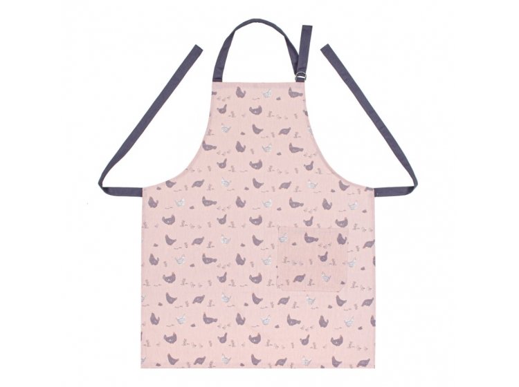 Фартух із регульованою зав'язкою Home Line "Прогулянка з курчатами" виконаний у рожево-фіолетових тонах з візерунком курочки та курчата .