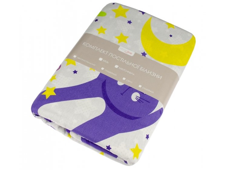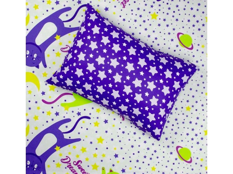 Комплект постільної білизни Home Line КОТИ фіолетові-ЗОРІ У ГОРІХ фіолетові виконаний у фіолетових тонах з принтом зірки та котики. Безшовні комплекти постільної білизни Home line, не втрачають свого кольору та яскравості навіть після численних прань.