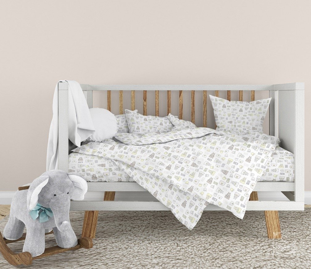 Дитячий в ліжечко: Підковдра: 112х147 см - 1 шт., Простирадло: 112х147 см - 1 шт., Наволочка: 40х60 см - 1 шт.