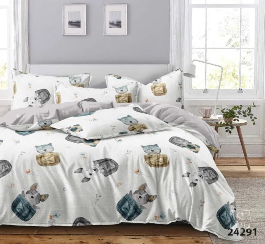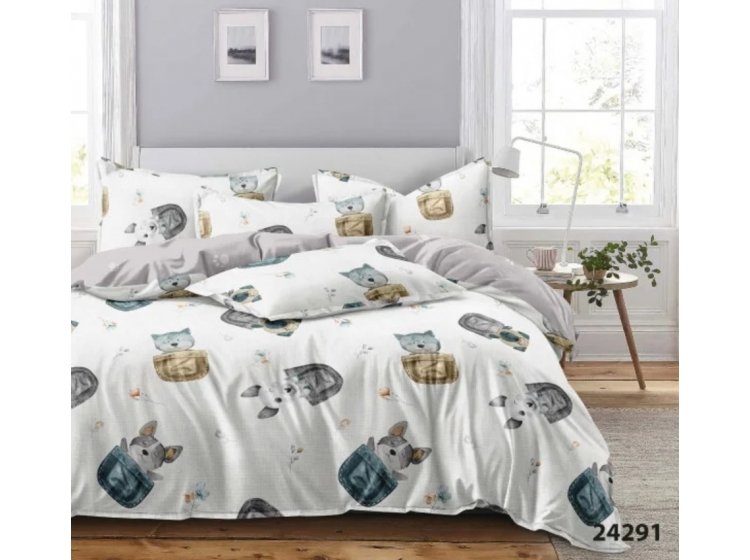 Підліткова постільна білизна Viluta із ранфорсу. Модель 24291 виконана у різнокольорових тонах з оригінальним малюнком собачок у кишенях.