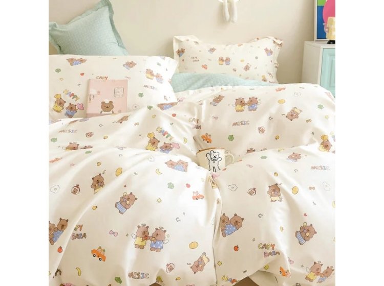 Дитячий в ліжечко: Підковдра: 105х145 см - 1 шт., Простирадло на резинці: 60х120х10 см - 1 шт. Наволочка: 40х60 см – 1 шт.