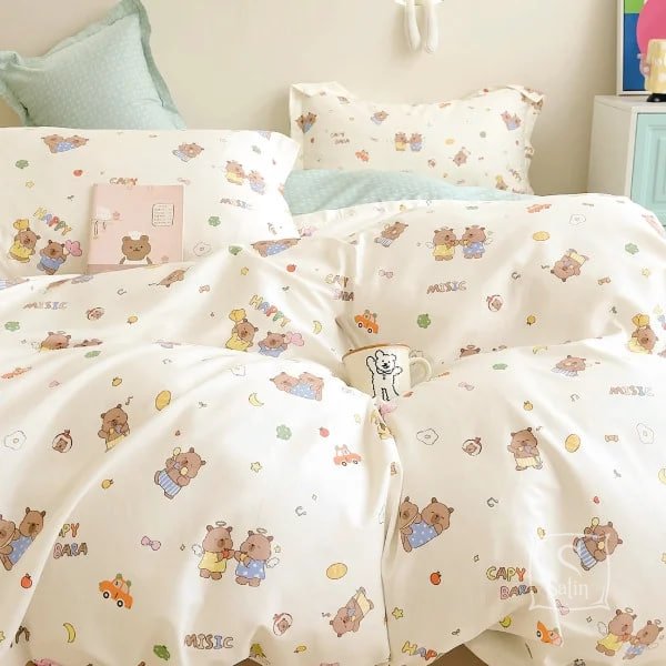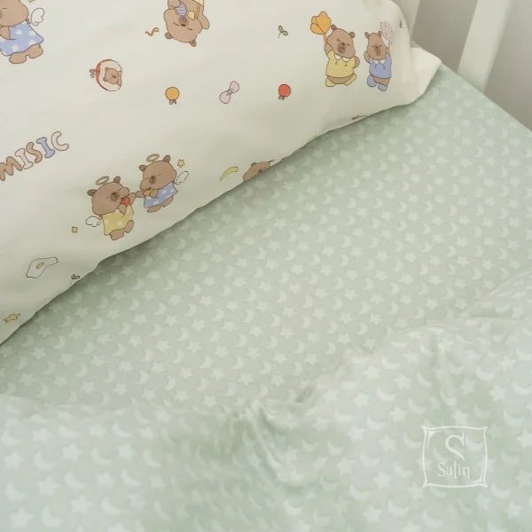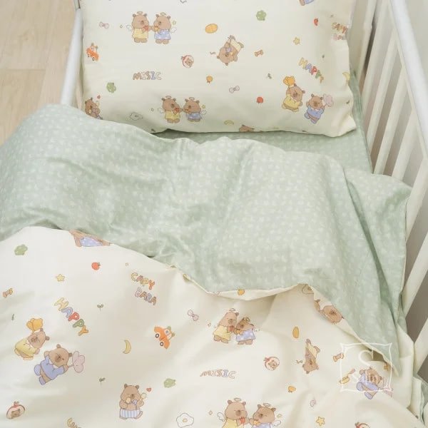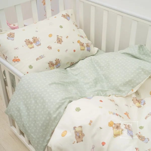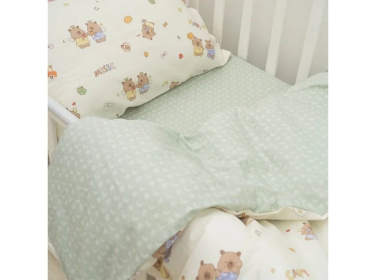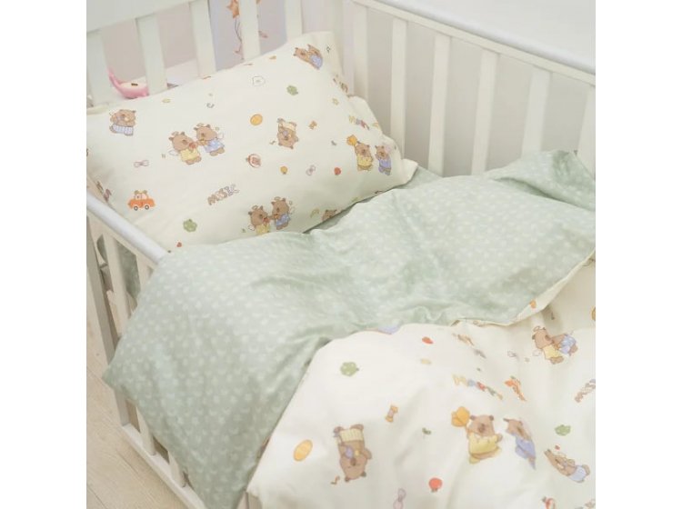 • Комплект 765 оформлений у молочно-зелених тонах та з принтом ведмедиків;
